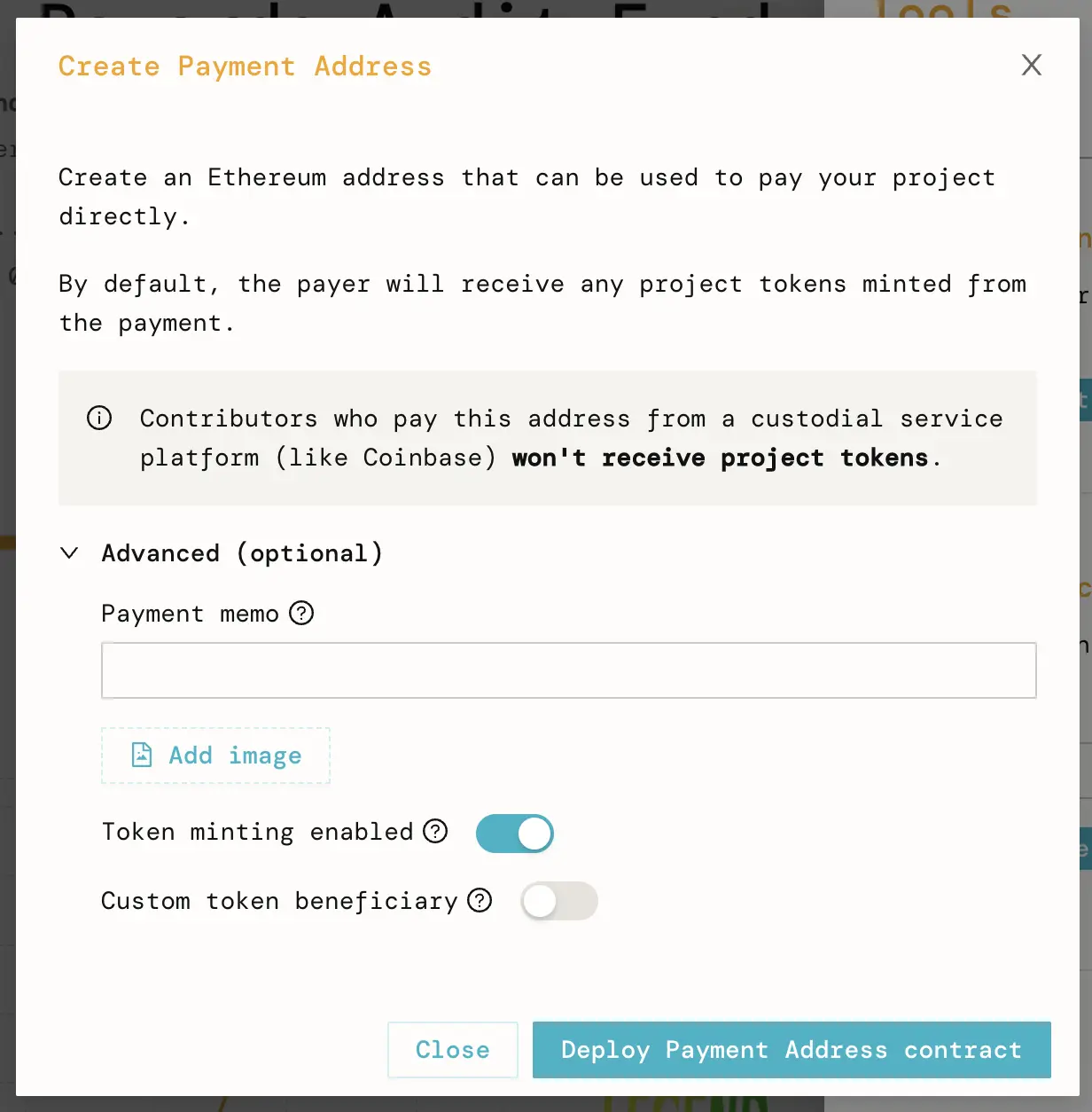 A payment address forwards ETH it receives to a given project. Anyone can create a payment address for a project.